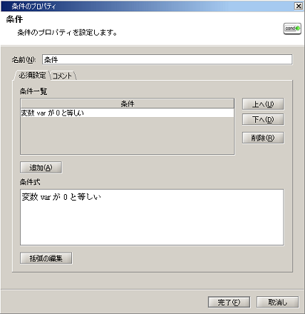 - 条件の左辺で指定した変数の型によって、比較可能な値のみが条件の内容と右辺に表示されます。