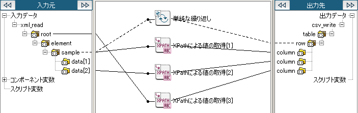 XML形式の入力データからXPath式により値を取得します。