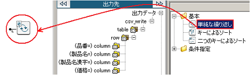 入力元と出力先の要素(繰り返しポイント)を繰り返しロジックでつなげることによって、その配下の要素を繰り返し処理できます。