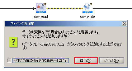 出力スキーマを持つコンポーネントと入力スキーマを持つコンポーネントをデータフローでつないだ際に、「マッピングの追加」ダイアログが表示されます。