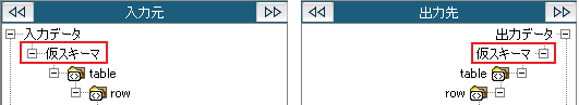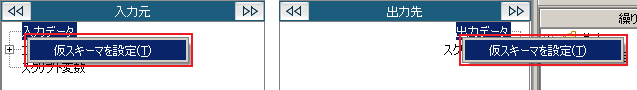 入力元の「入力データ」、または出力先の「出力データ」の右クリックメニュー[仮スキーマの設定]を選択してください。