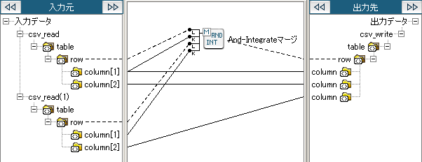 入力データごとのキー値を比較し、キーにマッチしたデータのみを列に追加する形で出力します。