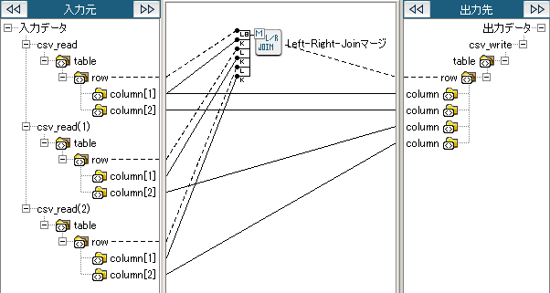Left-Right-Joinマージでは、1番目に設定された入力データに基づいてマージが行われるため、1番目の入力データと2番目以降の入力データの役割が異なります。